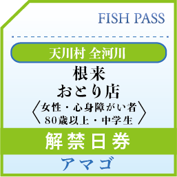根来おとり店 解禁日券 アマゴ 女性・心身障がい者・満80歳以上・中学生